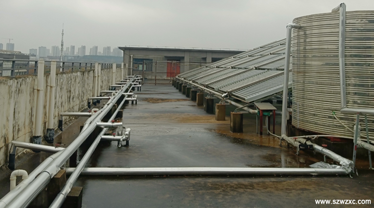 ? ??B、公司在自建工業園深圳、武漢、鄭州、成都、廊坊、煙臺、寧波等地宿舍樓頂空余面積位置鋪設光伏發電系統,首先解決熱水供應系統,讓宿舍用熱水可以不用電能,節約用電。